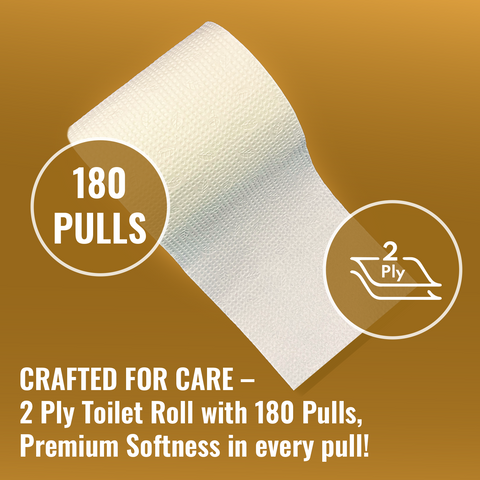 Highly Absorbent & Durable: Each toilet paper roll features 180 strong and absorbent pulls, designed for easy tearing and flushable convenience, delivering reliable performance without sacrificing comfort.
