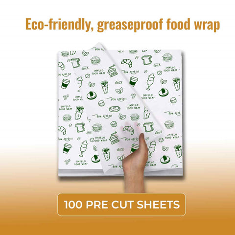 Imvelo Food Wrapping Paper Sheets – Set of 100 Pre‑Cut Sheets | 11 x 11 Inch | Food‑Safe Butter Paper Sheets, Non‑Stick & Grease‑Resistant | Food wrap for Roti, Sandwich, Paratha & Snack Packing
