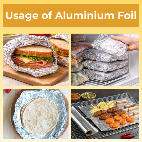 Multi-Purpose Use: Aluminum foil for food packing, wrapping sandwiches, roti, and other food items to keep them fresh. Protects food from moisture and air, preserving flavor and preventing spoilage.