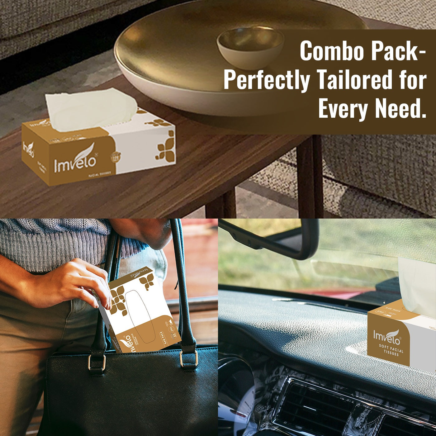 What’s in the Package: Within this package, you will find Tissue Papers Combo Pack of 6 Tissue Boxes |2 Regular Pack + 2 Car Pack + 2 Bag Pack