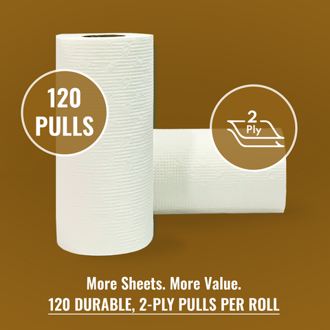 What's in the Box: Imvelo 2 Ply Kitchen Towel 6 Rolls, 120 Pulls per Roll.
